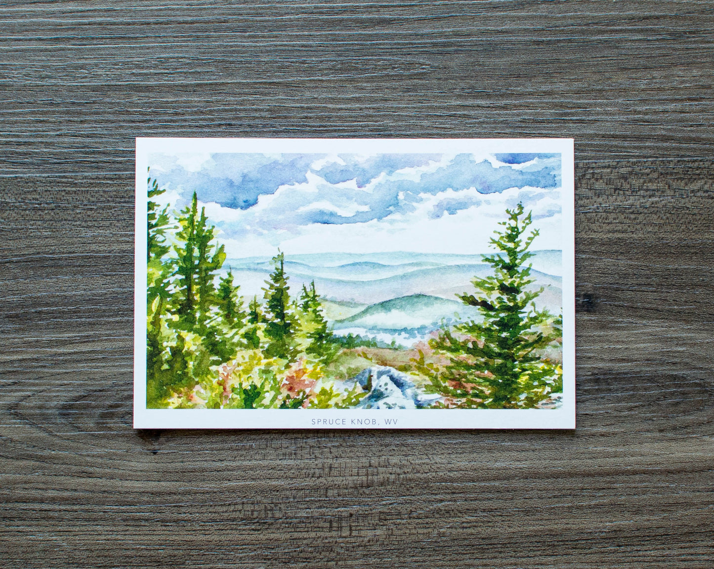 This postcard features a reproduction of my Spruce Knob, WV watercolor painting.